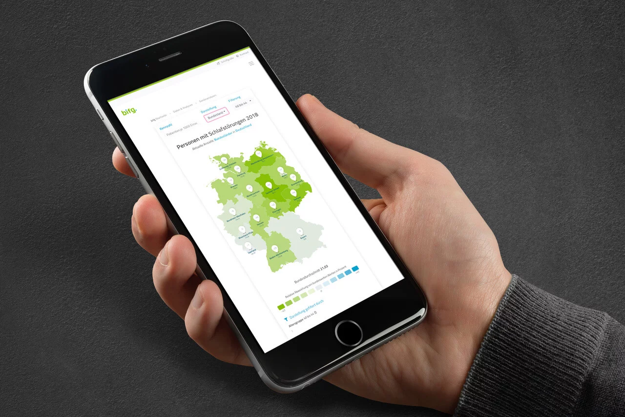 Das BARMER Institut für Gesundheitssystemforschung (bifg) ist ein wissenschaftliches Institut der BARMER und versteht sich als Kompetenzzentrum für Versorgungs- und Gesundheitssystemforschung. zweiband begleitet von Beginn an das Institut – von der Entwicklung des Corporate Design inkl. Institutslogo bis hin zur Umsetzung der Institutswebseite. Wir übernehmen sowohl die unterschiedlichsten Designleistungen als auch die intensive Betreuung, Wartung und Weiterentwicklung der Webseite. Die Webseite enthält umfangreiche interaktive Grafiken und Karten, die wir stetig weiterentwickeln, warten und auf Ihre Funktionalität überprüfen.