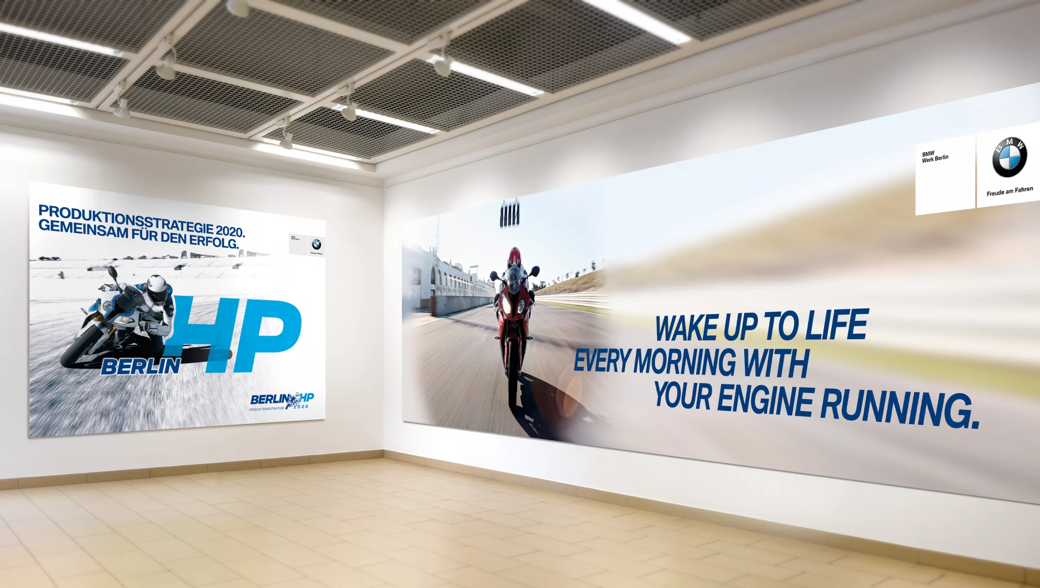 Layout und Gestaltung von Großformatbannern für das Werksgelände Berlin (Visualisierung durch Mock-ups).