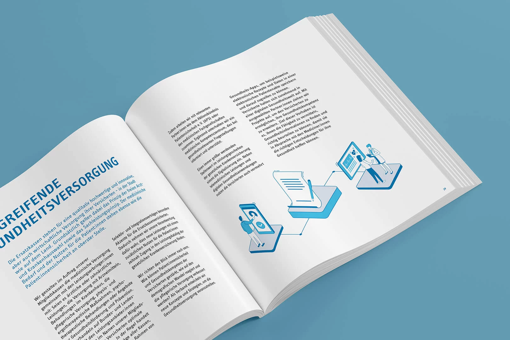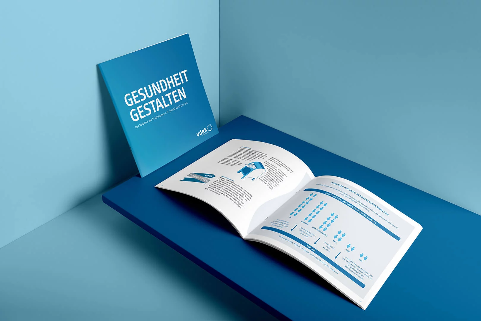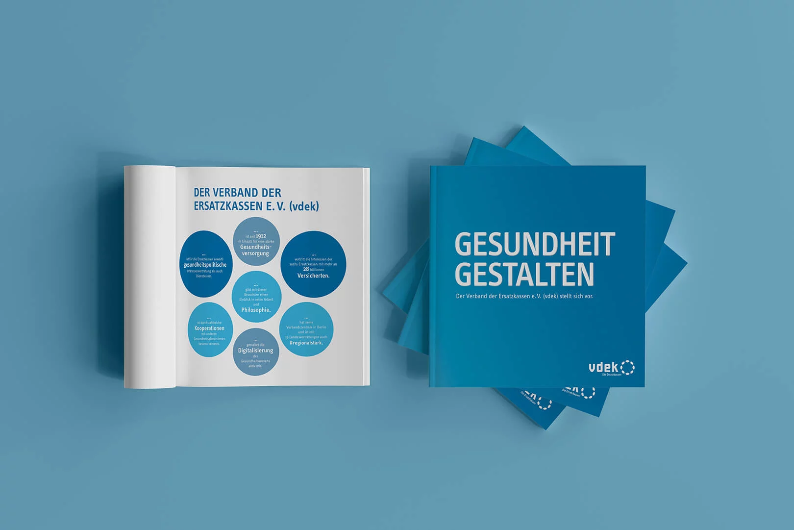 Für den vdek haben wir die Erstellung der Imagebroschüre übernommen. Dabei habe wir sowohl das Rahmenlayout, unter Berücksichtigung des Corporate Designs des Auftraggebers, entwickelt und konzipiert, als auch alle Layout- und Satzarbeiten sowie die Entwicklung der Infografiken übernommen. Die Broschüre wurde als Druckfassung publiziert.