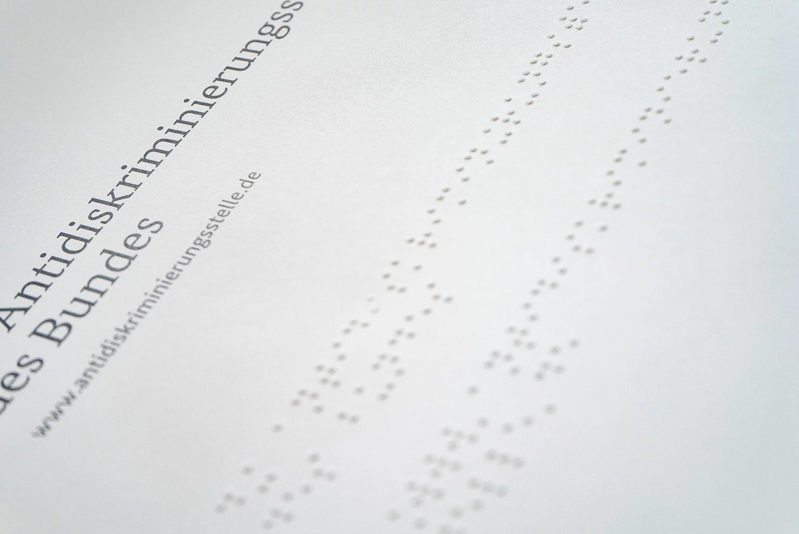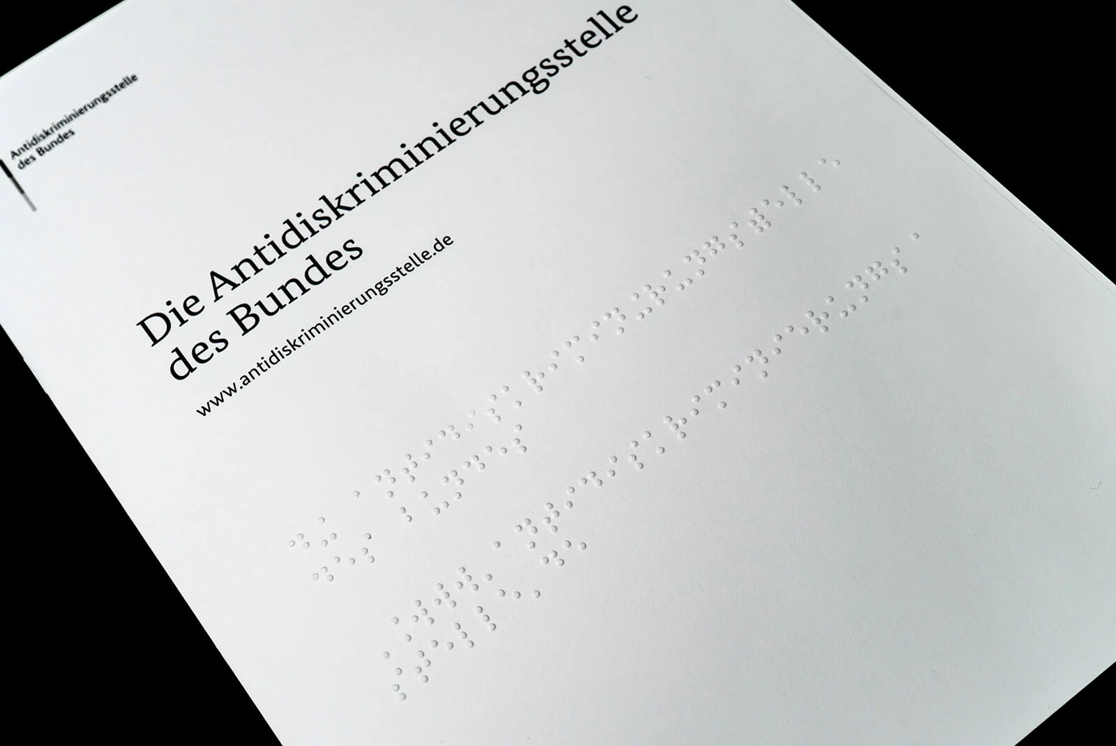 Antidiskriminierungsstelle des Bundes (ADS) – Imageflyer in Brailleschrift