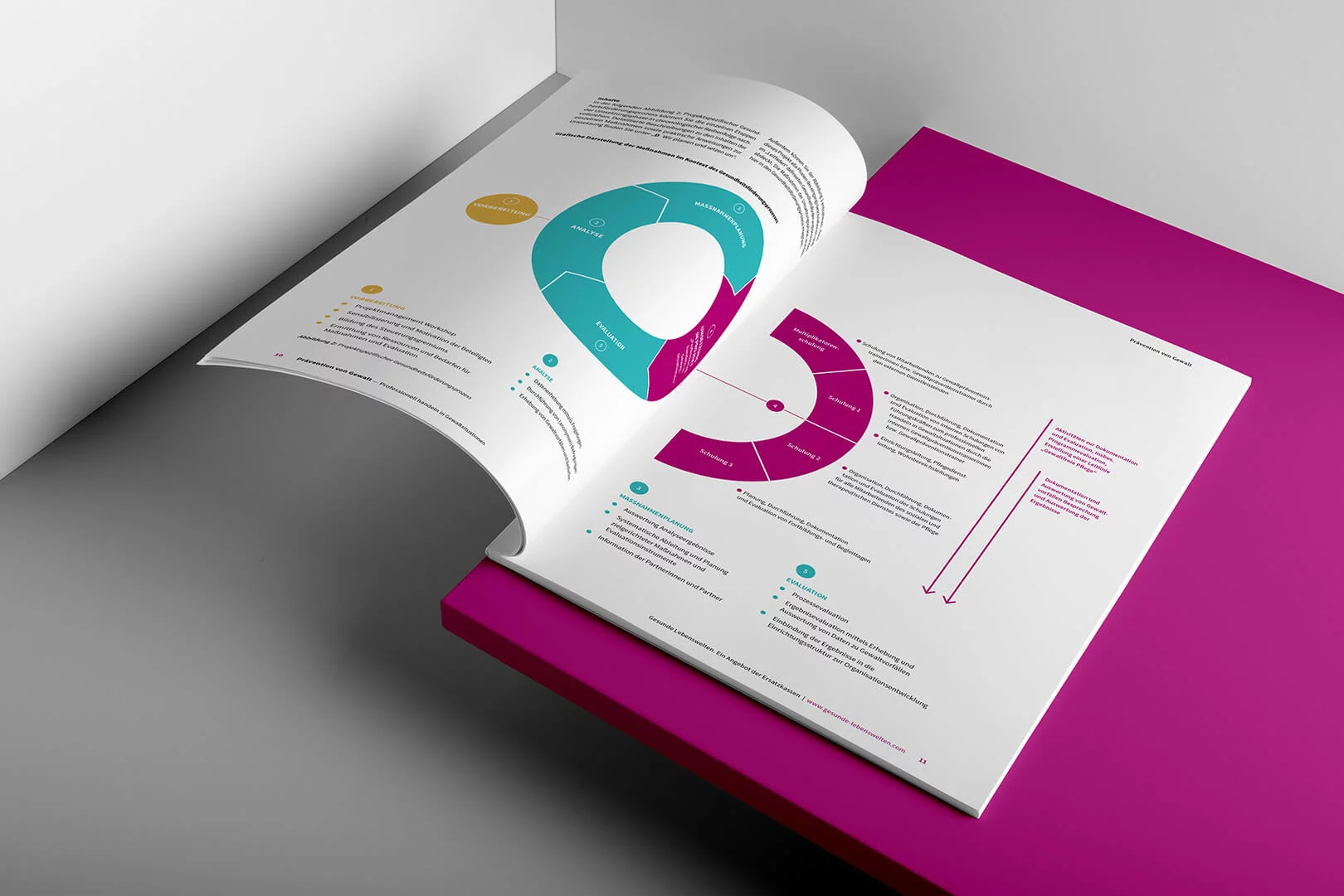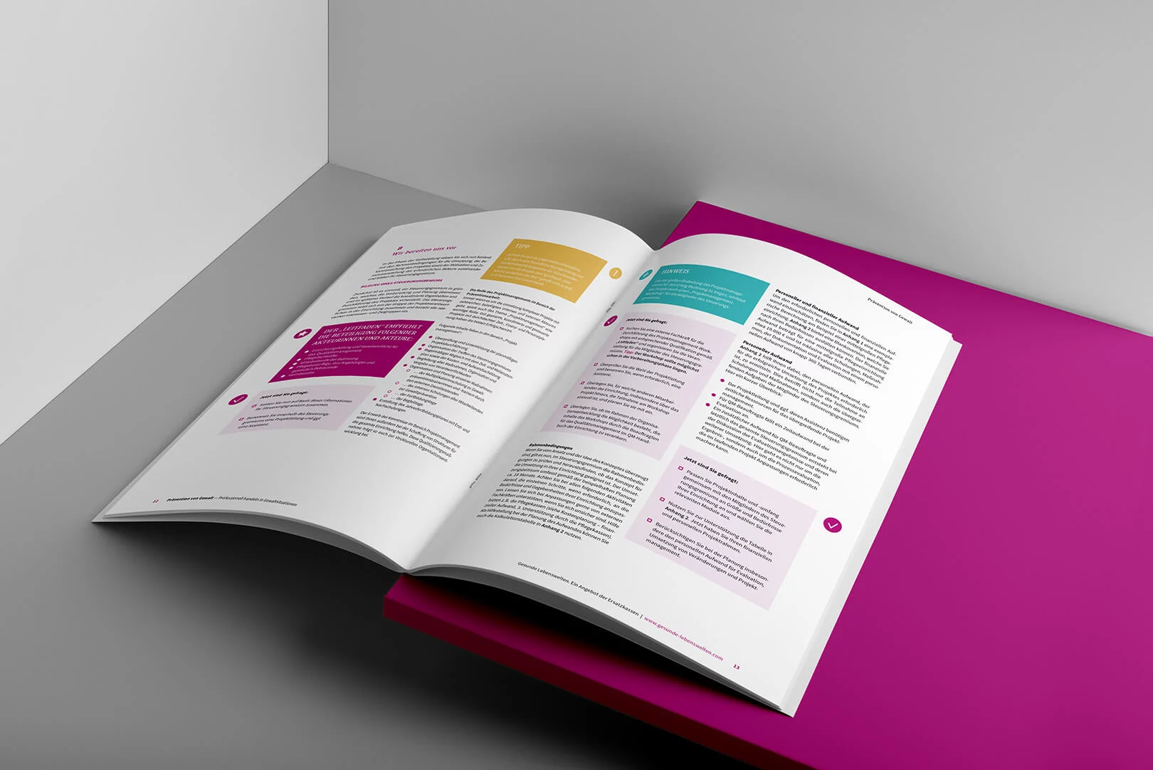 Für die „Gesunden Lebenswelten” (vdek) setzten wir diverse Praxisleitfäden auf Basis des durch uns erstellten Corporate Designs um. zweiband übernahm dabei neben dem obligatorischen Projektmanagement die gestalterische und technische Layoutumsetzung der gesamten Leitfadenreihe.