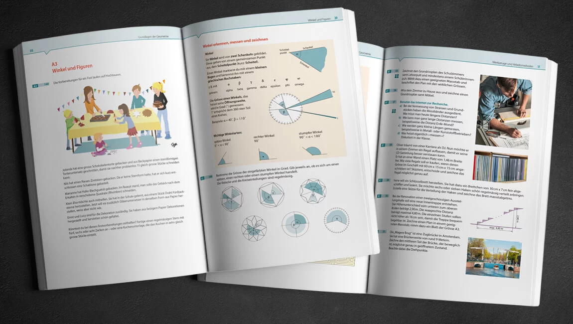 Realisierung der gesamten Schweizer Reihe (Schulbücher, Lernspuren, Begleitordner, Lösungen) für die Fachbereiche Arithmetik & Algebra und Geometrie mit Formelsatz und Erstellung von technisch-mathematischen Zeichnungen.