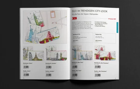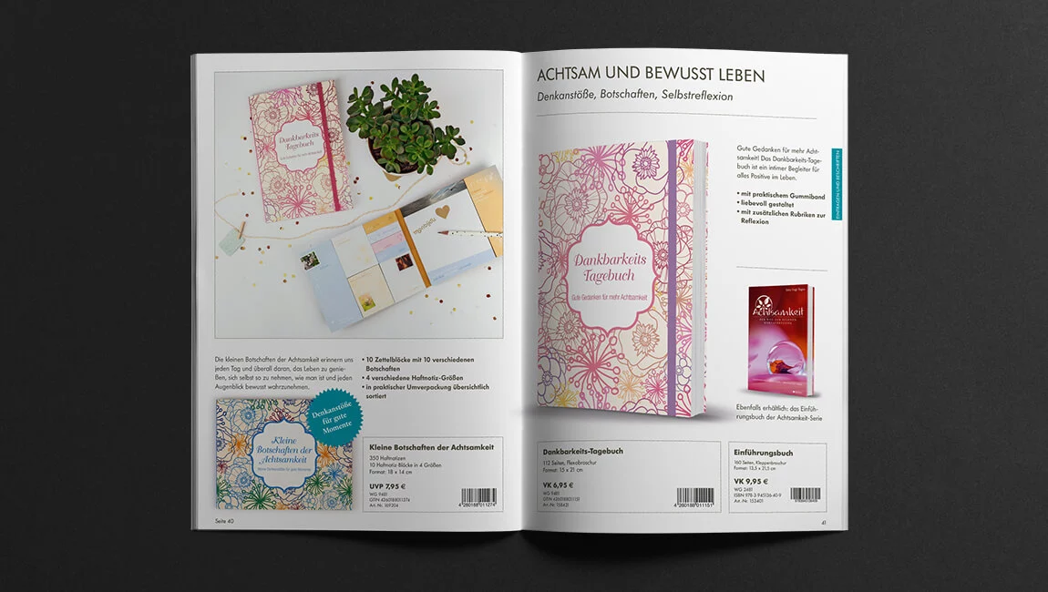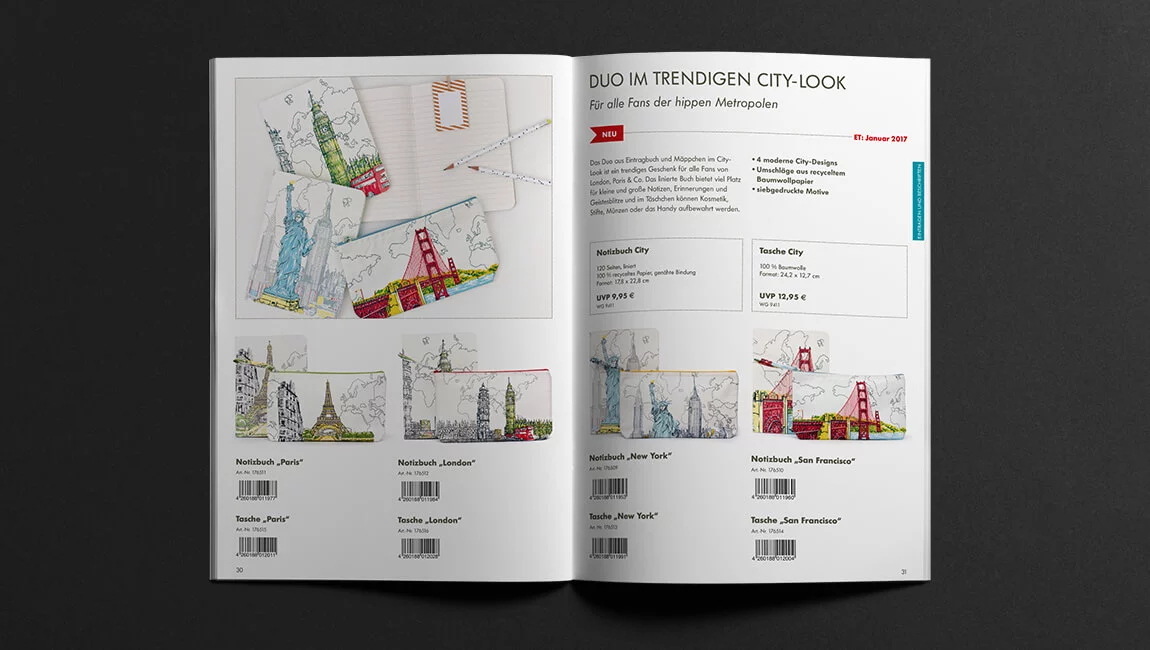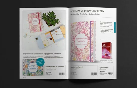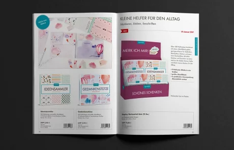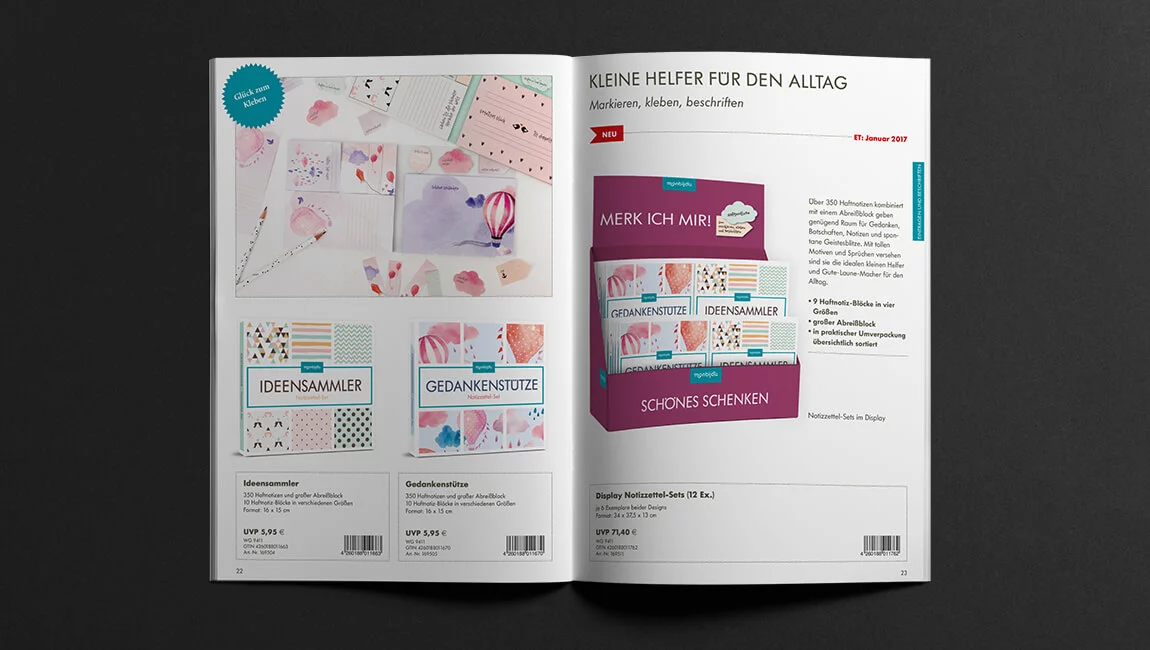 Layout, Satz und Reinzeichnung des monbijou-Katalogs „Schönes Schenken“ für das Frühjahr 2017.